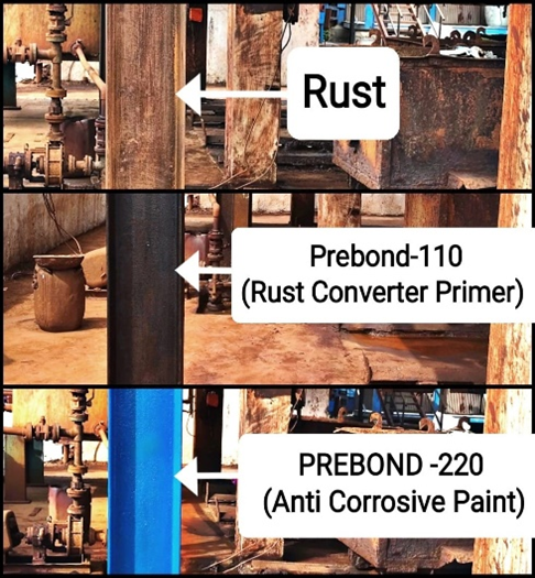 Water-based, non-acidic and non-toxic, ready-to-use rust remover-cum rust preventive solution for metal surfaces.